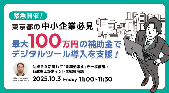【10月15日(水)まで】東京都の中小企業必見|最大100万円補助金の無料相談会申込受付中!