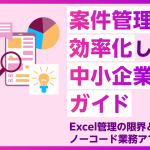 本記事では、案件管理の基本項目、Excelの限界、改善方法、ツール比較、ノーコードでアプリを構築する方法、事例までを包括的に解説します。