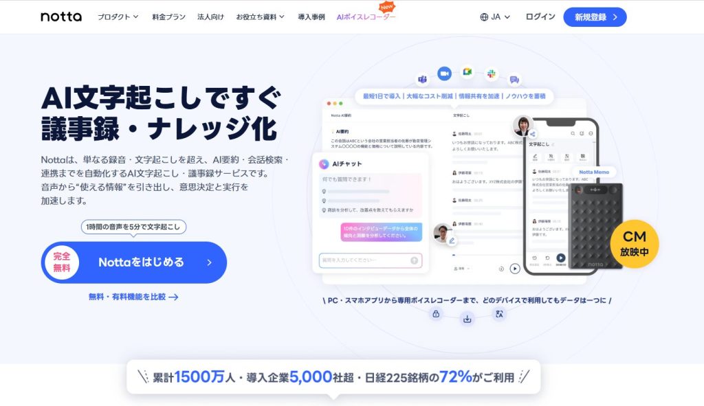 Nottaとは、高精度な音声認識AIを搭載した自動文字起こしサービスです。