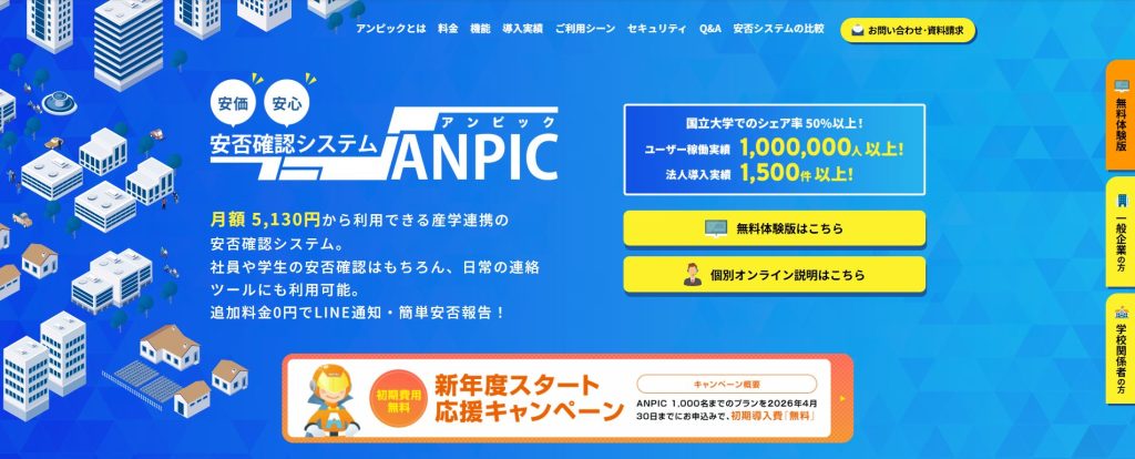 ANPICは、静岡大学・静岡県立大学と共同開発した産学連携の安否確認システムで、東日本大震災時の実績をもとに製品化されています。