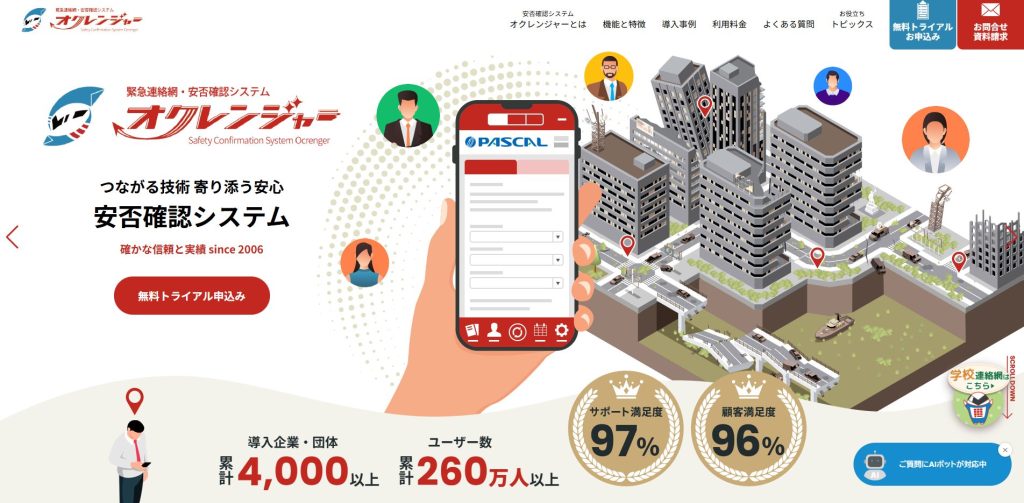 オクレンジャーは、2006年から提供されている安否確認システムで、全国約800校に導入されている教育機関での実績が豊富なサービスです。